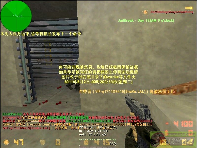 102011-8-2 00:21:00【10越狱***服(Wolf.Alone)】会员VIP-loverabbit购买OP权限把玩家VIP-q171109415[SnaKe.LAL]惩罚5局