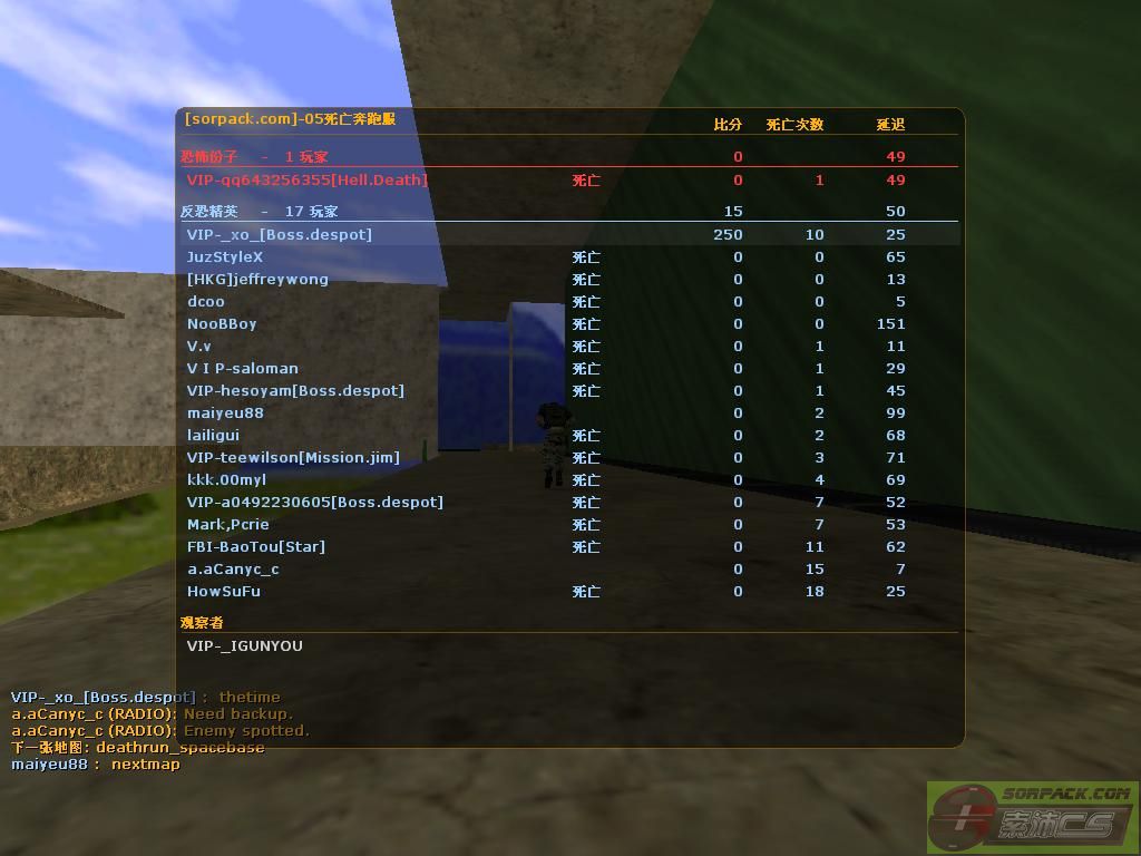 | -- 作者:Guao_3DM -- 发布时间:2011-12-30 20:37:00 -- 上面個個識上頂就SO EASY 唔識就好難 名字:deathrun_cannabis_v1.bsp 刷分圖包括 deathrun_dangerous.bsp 機關很垃圾 deathrun_sunshine_v2_1.bsp 不解釋 deathrun_poison.bsp 易刷分 如果趺下水立即防卡可以免你一死 Deathrun_Pycho.bsp 上鎚子後沒壓力 dr_death_reach.bsp 金字塔 趺下黑色的地面後會死BUT死數不會加1 |