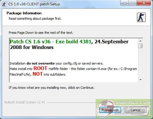 | -- 作者:NooBLeT -- 发布时间:2010-08-24 21:01:00 -- Non-Steam CS 1.6 English Ver. 主程式是CS 1.6 2603版本 + Zbot,安裝程式並無加入任何腳本或amxx插件。 我亦提供兩個更新檔下載:一個是47協議最終版的4156版本更新檔 另一個是48協議的4381版本更新檔 註: 1. 如果你想更新後仍能進入47協議的服務器,請下載4156版更新檔。 2. 主程式和更新檔都是英文版。 --------------------------------------------------------------------------------------- This is the English version of CS 1.6. The version of main program is 2603 (with ZBot). No cfgs or amxx mod is added. I\'ve given out two patches. One is 4156 patch, the final version of Protocol 47. Another one is 4381 patch, which is updating the Protocol to 48. p.s. If you still want to connect the server which is using Protocol 47 after updated your CS, please use the 4156 patch. Otherwise please use the 4381 patch. --------------------------------------------------------------------------------------- Download Link : 主程式 (Main Program): http://www.easy-share.com/1911997902/Counter-Strike_1.6_v2603_Setup.exe 4156版更新檔 (Version 4156 Patch): http://www.easy-share.com/1911997934/CS_1.6_v35(4156)_Patch_Setup.exe 4381版更新檔 (Version 4381 Patch): http://www.easy-share.com/1911997974/CS_1.6_v36(4381)_Patch_Setup.exe [此贴子已经被作者于2010-8-25 11:00:16编辑过]