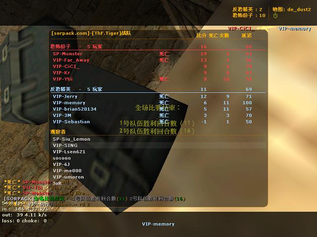 | -- 作者:SING -- 发布时间:2008-12-11 8:33:00 -- 高度表揚新隊員 far_away 新隊員 far_away 昨天才正式加入已經代表gof vs sbs. 開局第一鎗殺的第一個竟然會是牛cho..(呆了..) 最後以gof小隊的配合.反超前並且險勝.恭喜恭喜. p.s. 圖中上半場away兄的frag是負數其實不正確..他斷線了兩次-_-....(所以總合是正數.) 繼續努力![]()