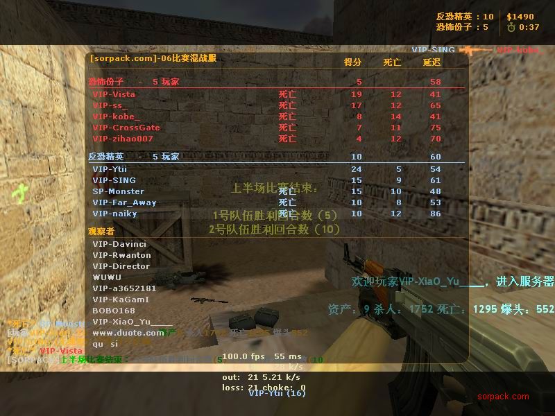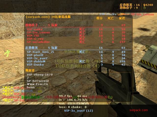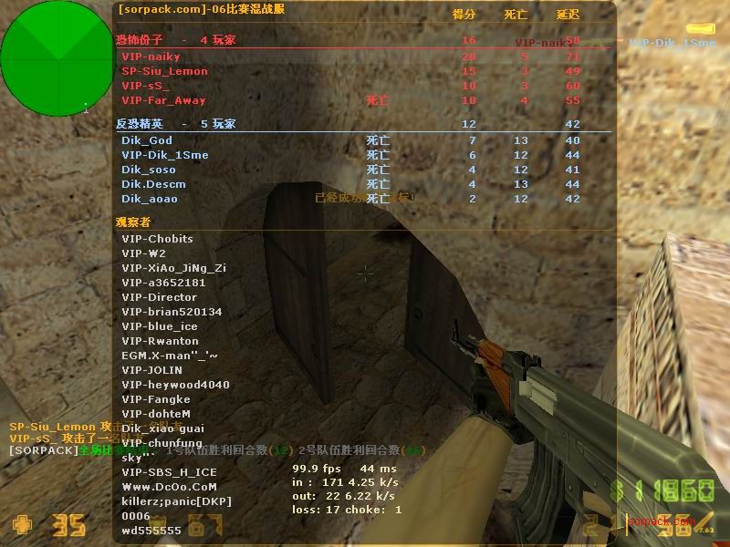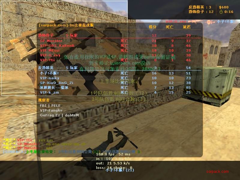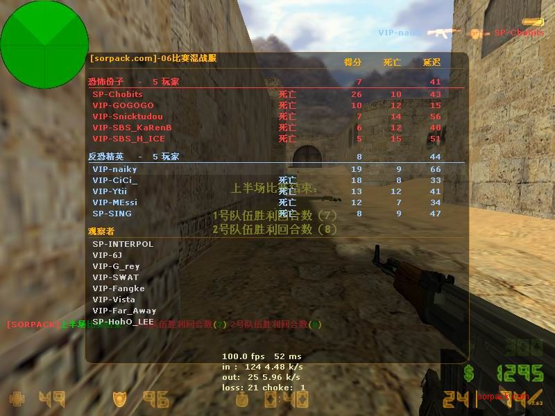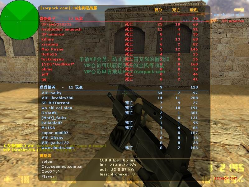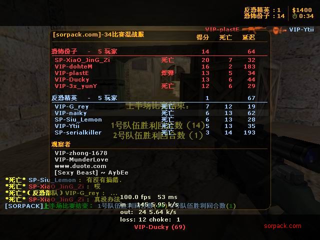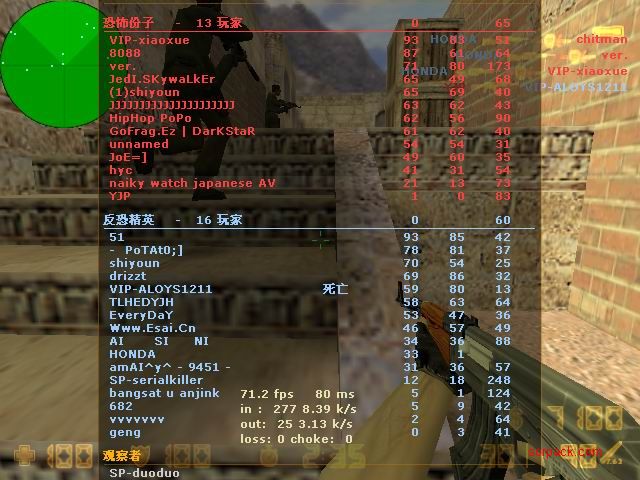 我们的财富!1CE! 有空来看我们吧~ 外挂进游戏的后果。。 SPvsVIP 自索沛连坐时间之后的那几天 我去拜访了castB.S 。。。 有准心的AWP 死的有点多。。 又是一场世纪大战 观众好多~ super OP admin 高手一个。。 我的实力比他差多了 不过我和他也不是一个风格的。。 画面中躺着呢VIP是作弊 他在SP眼皮底下开作弊 可想而知 遭封禁了 哈哈 (我是被他给阴的。。。) SB monster 杀了3个。。 TK多了会被系统踢出去的 cici!! 又发现了一个high frag :D 你们能看到我的成绩和名字吗。。。 我看不到 bind 。。。。 我在绑定东西。。 away的重磅炸弹 我想他没有截图留纪念 不过我留了~ :) 我在这里严重警告你 上这里是违规的 如同作弊 权力大就可以不顾别人说你上去吗 还在那里看A大 。。 我也小爆两个 开外挂的不服。。 到TIG服玩了玩 maximus! 此主题相关图片如下:![]() [此贴子已经被作者于2009-6-25 15:40:27编辑过]