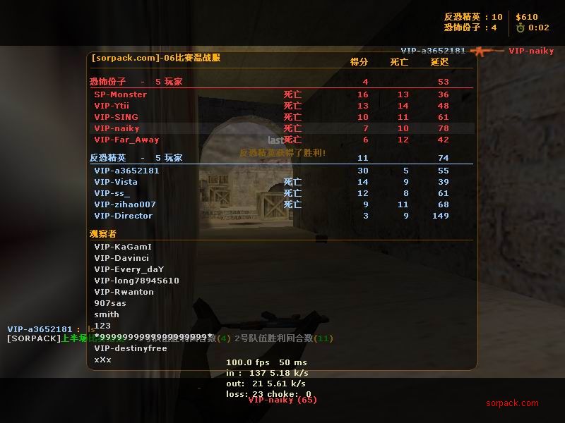 SP对VIP VIP获胜!