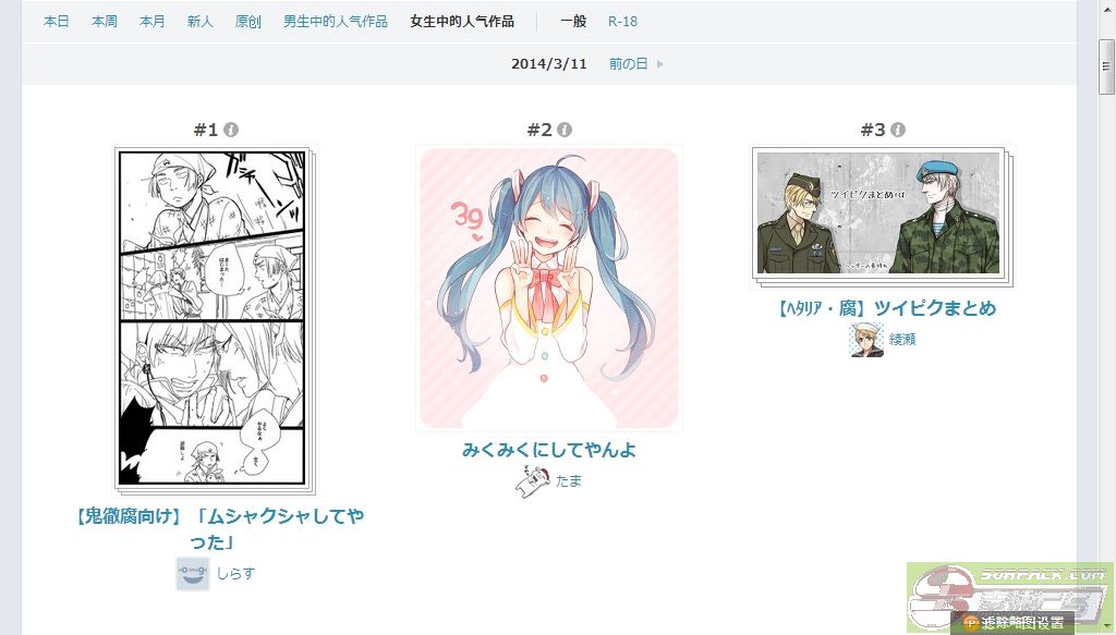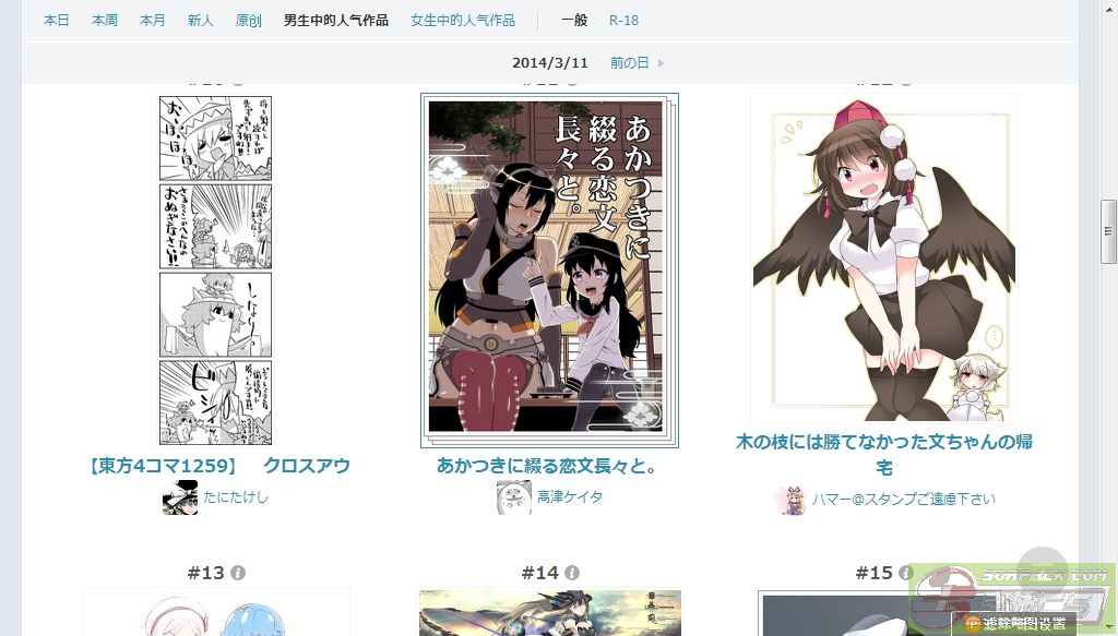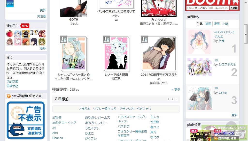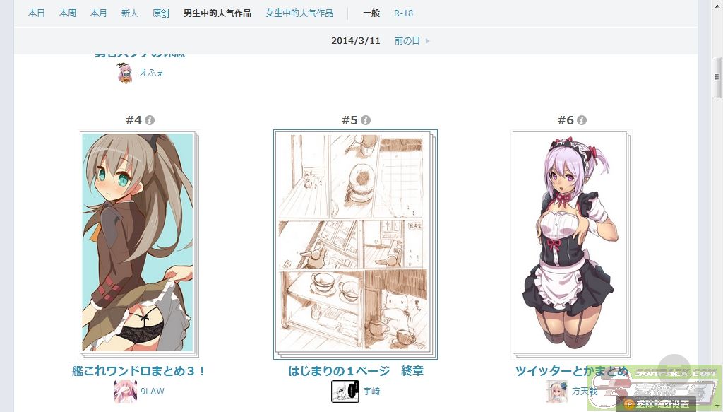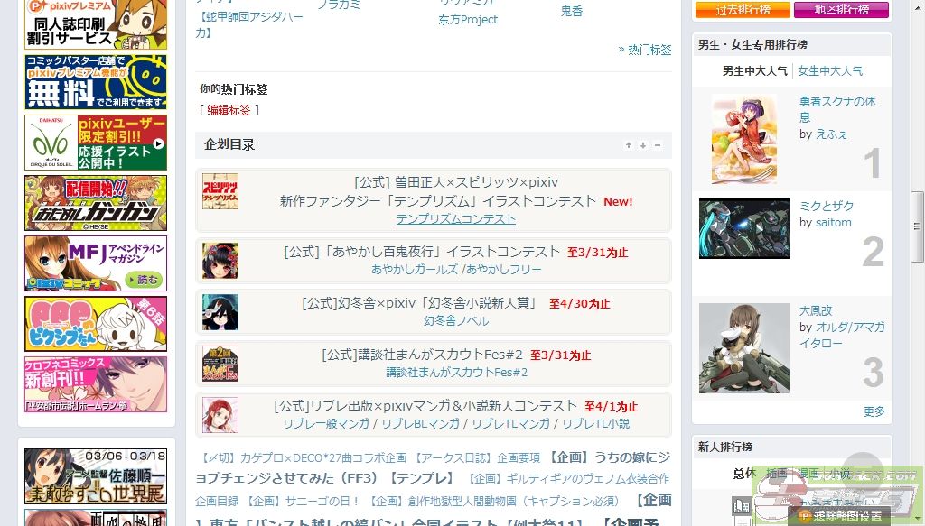 点击邮箱里面的磁力链 账号自动激活 然后让你填一大堆乱七八糟的东西 直接关掉 重新登录pixiv 其实 首页的都是散图 新人作 咱们直接跳过 进入主题 随便点个 男生中大人气[男生作品人气排行] 女生中大人气 [女生作品人气排行] 抱歉 本人日语有点渣 后期的就看你们了
