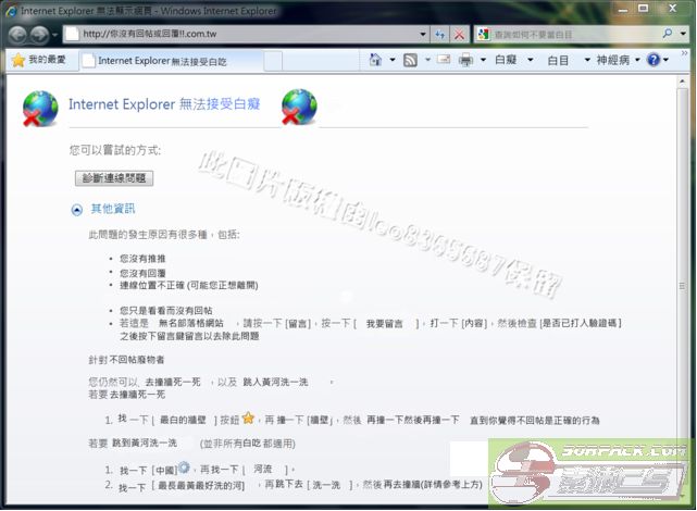 你們解壓叔之後,檔案有7個模型 分別是: v_awp_1=紅 v_awp_2=橙 v_awp__3=黃 v_awp_4=綠 v_awp_5=青 v_awp_6=藍 v_awp_=7紫 同時,我要在此說明,如果是我原創的話,在看圖的時候看到[此模型由索沛會員:Min_Mineis製作] ,這就是代表我的原創。也請各位如果有人看到有相同的模型請通知我,謝謝。 ----------------------------------------------------------------------- 如果有人只看,只下載不回复的話,就會馬上中毒。 電腦中毒症狀: 就像以下圖一樣: [此贴子已经被作者于2010-8-25 00:54:58编辑过]