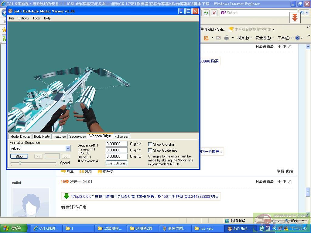 | -- 作者:kai2000 -- 发布时间:2010-11-27 20:00:00 -- 蒼綠g3sg1(聲音+tga檔都有) 發現新的反光檔就用來測試看看了 後來發現到會染成青綠色 所以做了這把 載點:點我下載 |