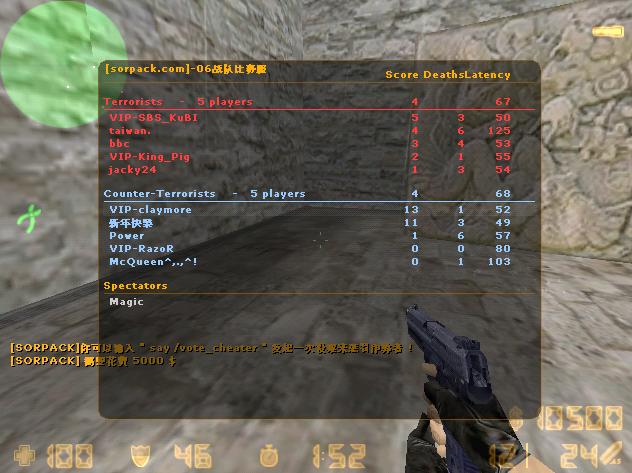 | -- 作者:claymore -- 发布时间:2009-01-24 11:20:00 -- 以下是引用Ducky在2009-1-24 11:19:00的发言: King_pig真惨,他是比我厉害,可是我趁他换弹时穿他,当场就暴头了