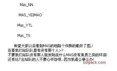 | -- 作者:Mas_tS -- 发布时间:2009-03-19 13:30:00 -- [注意]Lucky 进来一下 我有点事儿想说说 http://sorpack.com/dispbbs.asp?boardID=31&ID=70621&page=1