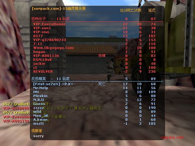 刚才那场的战绩 --------------------------------------------------------------------------------------- AZ吊桥(任务模式) C4最好不要放在A区 因为A区附近就有个天然的人类堡垒,1群人冲出来的话......会被SM得很舒服...... 放到B区开阔的地方 然后找个好点蹲下 有人单人拆包的话 绕到他背后2轻刀1重刀 一般都能解决掉 人多怎么办呢? 买轻功飞起来 把拆包的人 尽可能地1人捅1重刀 然后跳开,等他们安心再拆的话......嘿嘿嘿嘿......(楼主咸湿笑中......) 切记包不要放在角落里 这样有利与人类的拆包 --- 土匪人类小秘诀: 开局不要怕死 买完枪直接冲到A区,蹲进下图所在的地方: 如果路上有CT看见你 并且打算阴你的话~ 哦呵呵呵呵呵呵~(楼主再次咸湿笑) --------------------------------- CT拆包技巧:买好拆包器,等对友去拆包送死(人要在他附近)他刚被扫死的瞬间 立刻过去按下E 上演无声拆包...... 60%的几率能把包拆掉 40%会有一直扫包浪费子弹的菜鸟 那样就死定了...... ------------------------------------------------------------------------------ de_inferno:任务F建议当CT(CT容易输 可一直做鬼) 清B区秘诀:飞是一定要买的 建议飞3个箱子堆在一起的那个箱子堆(1个小箱子 2个箱子架一起 2个大箱子架一起堆一起那个) 注意飞上去后不要直接杀人 记得先到人头上 对着脑袋抽2刀 然后重刀 一般都杀得掉,然后嘛...在凶袭第2个箱子 刚才的飞还没完 飞过去 用这个方法清理掉,再去清理第1个箱子(差不多没飞了 记得第2个箱子上的人杀掉后要回避下 第1箱子的人会很注意这里) 用旋转跳跳到第1个箱子的侧面 这个路线不容易被注意 边动跳边重刀 杀干净后拆包。 (本人用这个方法杀掉了B区的9个人 虽然是在当T......) A区的话 直接拆包吧 如果他们把包放在最靠近坑位的那个地方。(记得要以最远的距离拆 不然会被扫死) --------------------------------------------------------------------------------------------------