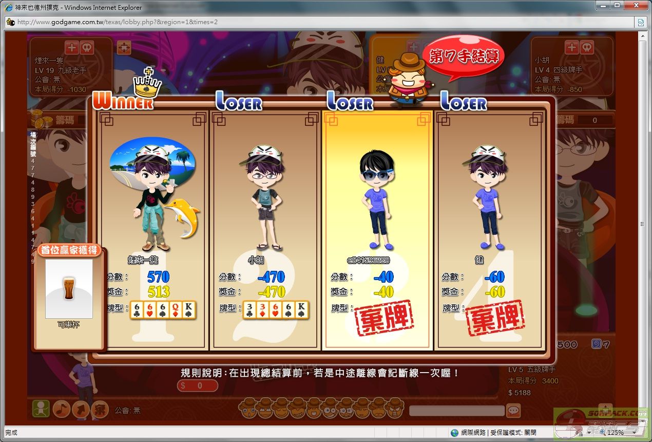 一次大家ALL IN 我順子 她們都2對 或1對 和3條 哈哈~~ MM一起和你報喜~~ |