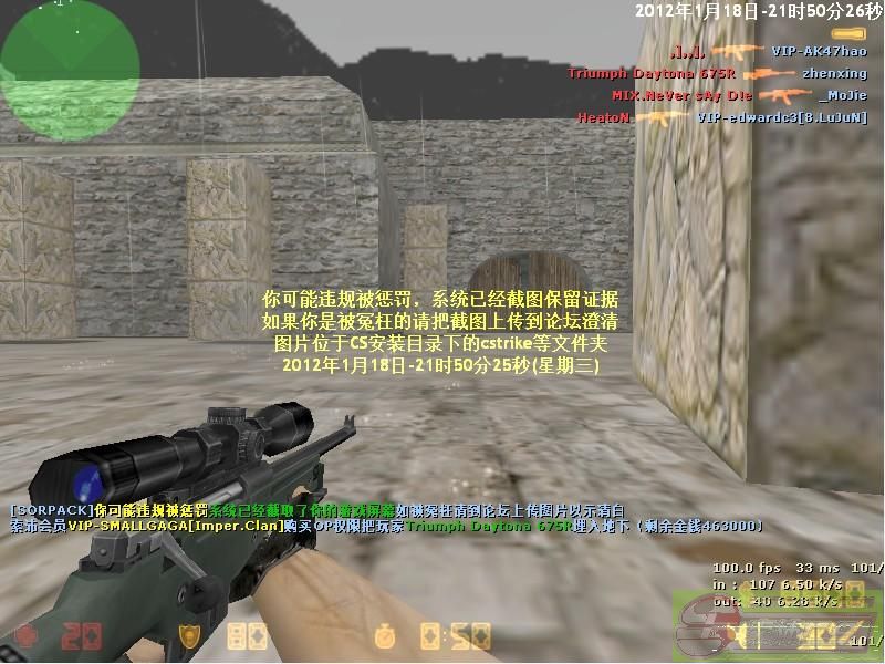 | -- 作者:volcom -- 发布时间:2012-01-19 13:16:00 -- 我不是VIP,对我来说50SB或是多少都无所谓,我不在意这些.前面我也说了,我只玩死亡F,玩索沛96死亡F因为人多且环境比较好,至于CS枪法技术 或者意识这些,如过你是2000年就开始玩电脑,第一个游戏就是CS,现在电脑上只有CS这么一个游戏,你就会明白我对CS的热爱,虽然才从07年玩 1.6,之前都是1.5..但我敢说玩1.6从没开过任何外挂,脚本..CS视频我不少看,比赛,解说,教学,都有...还有,我现在玩死亡F只玩三种 枪,主AWP+沙鹰,或者主沙鹰+单发霰弹枪,也就是B21.用哪种看地图来选..不玩M4,AK...如若不信,以后我每次玩都开录像录制个人POV 吧..不然只能换个F了.. |