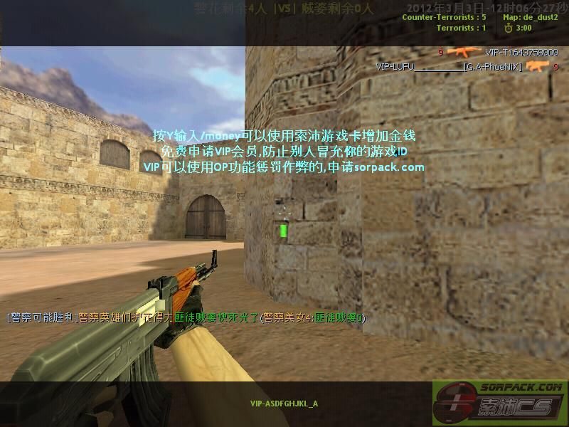 | -- 作者:ngokimcuc -- 发布时间:2012-03-06 19:20:00 -- 此主题相关图片如下:![]() 此主题相关图片如下:![]() 此主题相关图片如下:![]() 此主题相关图片如下:![]() 此主题相关图片如下:![]() 此主题相关图片如下:![]() 录制者:VIP-yiufat1991 嫌疑人:VIP-ASDFGHJKL_A 时间:2012年03月03日 12:07:26 服务器:[sorpack.com]-78英雄救美服(Wolf.Alone) 地图:de_dust2 12:07:56 VIP-ASDFGHJKL_A ak47--> 88 12:08:30 VIP-xiaoniou[Wolf.Alone] ak47--> VIP-ASDFGHJKL_A(爆头) 录制者:VIP-yiufat1991 嫌疑人:VIP-ASDFGHJKL_A 时间:2012年03月03日 12:05:34 服务器:[sorpack.com]-78英雄救美服(Wolf.Alone) 地图:de_dust2 12:06:28 VIP-ASDFGHJKL_A ak47--> VIP-jzc919085557[Undead.hook](爆头)