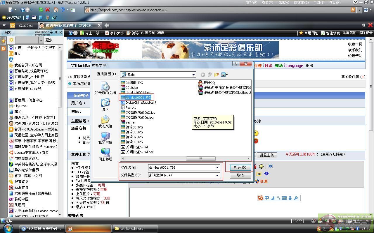 | -- 作者:CTUJackBauer -- 发布时间:2010-03-05 17:10:00 -- 一:被OP后如何提供系统自动截图证明自己清白:(图片均可以点击放大)1.每次投诉后,版主总会要求上传系统截图,这个截图的位置在哪里呢? 在你的CS安装目录下的一个叫做cstrike_schinese的文件夹中(繁体中文版和英文版与简体中文版略有不同) 2.找到那个系统截图了,是bmp格式的。左边会有提示,这张图的日期、格式等 3.以bmp格式是无法上传到论坛的,你上传完只会出现一个红X。所以我们要转换格式。 右键单击这张bmp格式的系统截图,在打开方式中选择画图。这样这张图就在画图程序中被打开了 4.在画图程序中确认是这张图,一般都有中间的黄字,但不排除因为延迟造成没有黄字。然后左键单击另存为 5.在另存为对话框中选好保存路径,注意这里的保存类型。现在是bmp,点击黑色下箭头,选择JPEG那一项。保存 6.好了,保存完了。通过属性比较我们可以发现,jpg之所以可以上传是由于他比bmp小很多 此主题相关图片如下:![]() [此贴子已经被作者于2010-3-5 17:18:03编辑过]