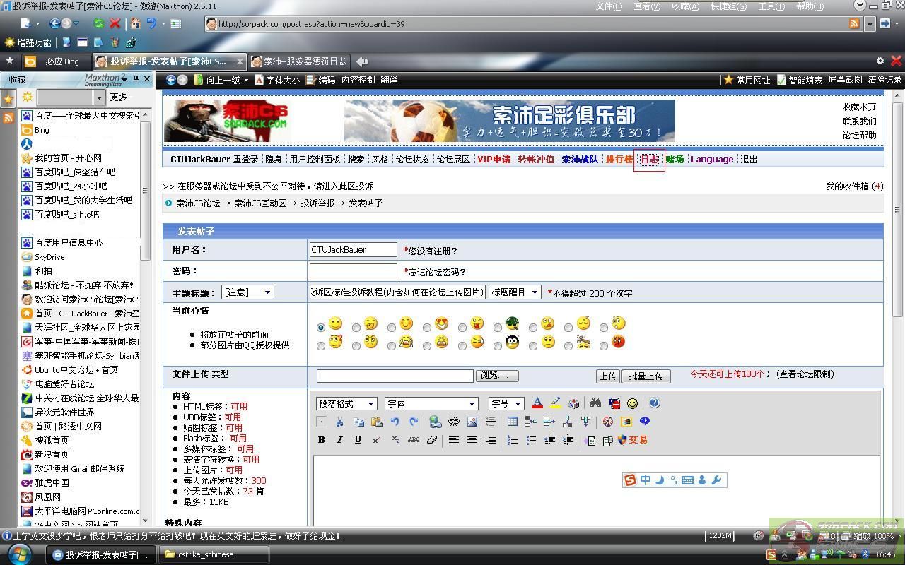 | -- 作者:CTUJackBauer -- 发布时间:2010-03-05 17:42:00 -- 二:如何上传和寻找并引用日志1.上传到索沛论坛: 输入网址www.sorpack.com 并填写好登陆信息后,进入投诉版,点击发表话题 在文件上传里,单击浏览 2.选择我们刚刚转换出的JPG文件,单击打开,然后点击上传,即可完成上传工作 3.在哪里找日志呢?就在索沛论坛的首页上,有个叫日志的标题栏,点击进入 4.如何把日志复制出来?按住左键选择这条日志,全选。 在键盘上按ctrl+c,完成复制。在发帖框,ctrl+v,日志就复制过来了 不用再单为日志截图了 此主题相关图片如下:![]() |