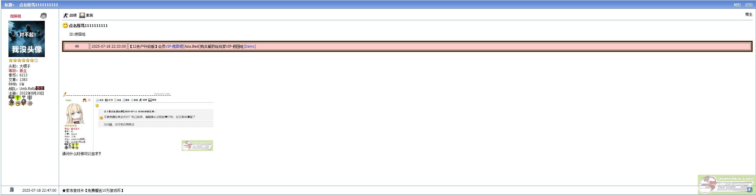 | -- 作者:buxieyiqie -- 发布时间:2025-09-06 10:35:00 -- 丧尸服现象默认刷人机,是个玩家都应该知道的吧?谁出好枪了别人都会给人王刷分,不像你不知道?游戏里可以抓人啊,谁给你说不能抓人?抓完人还骂人?说不过去了吧?我都懒得回你了。 |