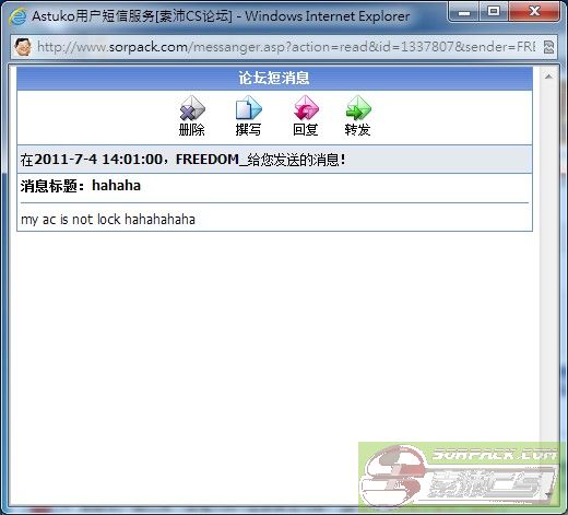 | -- 作者:Astuko -- 发布时间:2011-07-04 14:27:00 -- 他是不會賠的了,還說:hahahah,我的AC是不會被封的。 |