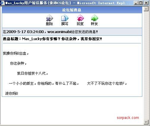 | -- 作者:Mas_Lucky -- 发布时间:2009-05-17 3:30:00 -- 超版和版主来封号 还有我什么事都不知道就给他骂? [此贴子已经被作者于2009-5-17 04:07:52编辑过]