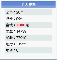 | -- 作者:Mas_nylxn -- 发布时间:2009-08-16 2:33:00 -- 金币是干什么用的? |