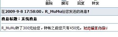 ----  木木给我的300块,我账号里竟然还是我以前的数目,他给我的我为什么没收到  (http://sorpack.com/dispbbs.asp?boardid=44&id=117568)