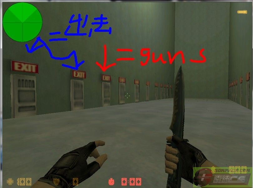 你看到EXIT和EXIT倒转的牌子,你进EXIT第1个门和第2个们,会出去。