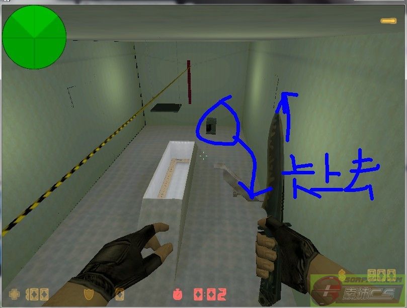 在TR基地墙顶有个石墙,可以打破(okgogogo cs 要看不难的)(可以用刺车卡上去)