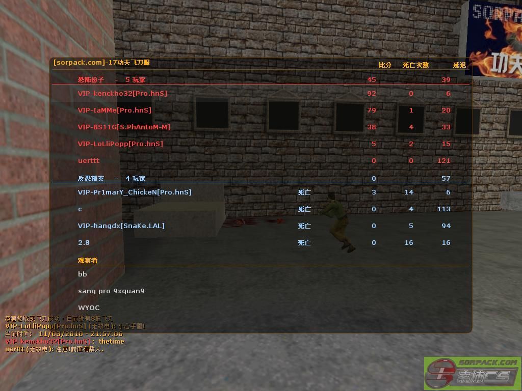 | -- 作者:kenckho32 -- 发布时间:2011-04-25 13:21:00 -- [灌水][原创]Pro.KNIFE招收飛刀玩家(17f) Pro.KNIFE招收飛刀玩家(17f)(PRO HNS 飛刀分隊 時常守服 技術良好 不用槍者 50分+考慮 100分+直入 飛刀獎勵豐富(用pro hns版發) 飛刀服(17服) (81服的分數-25分後才當作17服戰績計算)