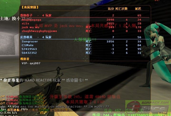 | -- 作者:zjy950316 -- 发布时间:2014-09-05 21:08:00 -- [原创][丧尸乐园][ZM+ZE]僵尸感染+逃跑服务器 CS1.6[丧尸乐园][ZM/ZE]僵尸感染/僵尸逃跑服 IP:121.12.117.99:27015 现在CS1.6很难找到大陆内的逃跑服了 这个服昨天刚开 没有人气 所以求人气啊!!! 嘛嘛 反正有免费睾丸[高玩]:通关FF7[这个是僵尸逃跑神图]你说很简单?NO!NO!NO! 首先人数要15+和等级100以上 通关这个FF7的最高难度 并且杀死图里的BOSS[巴哈姆特] . 你说这么变态的条件谁出的?还有谁啊 看这里!》》》》 逗逼腐竹:wugagagaga[我们叫他奔跑哥] 另外服务器的主菜单是M 另外N键是辅助菜单 这个里面可以换图 可以提名地图 还有等级排行榜 玩家可以看看你在游戏中的排名哦~ 接下来我介绍一下插件: 等级插件:玩家可通过游戏获得经验值 升1级获得1点技能点 但是技能种类不多啊 技能插件选项:M+9 =======================分界线===方便观看 防止串行======================================================================== 成就插件:通过达成某种条件而获得大量经验 接下来我就放出我知道的成就吧。 僵尸新人:使用僵尸感染或者爆菊花[插件 如果僵尸在人背后进行感染就会出现直接秒掉人类 并获得4积分 人类拿刀也有效] 人类新人:使用人类杀死僵尸。 唯我独尊:角色是人类的时候自己赢了一局游戏[另外还可以换背景音乐 全服人都有影响的 不过有背景音乐的设置 按键M+5] 初次获得MVP:故名思意 在一局游戏中获得第一名. 积累获得MVP:5局还是10局来着?SORRY 忘了。。。这个是积累完成的。 割碎僵尸:用小刀杀僵尸。。 中等智慧:100LV左右的时候出现的成就 这个需要杀几个人 得分高就会获得。。这个貌似不固定的。。反正这个经验很屌!20万! 还有一些忘了 你们去游戏中慢慢体验 透露太多岂不是乐趣都没了。。PS:小刀杀人不难 人类只要别蹲着用小刀 其实威力和击退是很大的至于多大只能你们慢慢体验喽 记住别作死! ======================分界线===方便观看 防止串行========================================================================== 武器熟练度插件:通过累积伤害和击杀僵尸获得熟练度.升级武器后可以提升伤害或别的属性 注意有些枪升级后就会降伤害而提升别的属性 5000伤害左右加1点 下面是各级 PS:可能不太准确 认真你就输了! 1级:3点 2级:5点 3级:10点 4级15点 5级:30点 6级:50点 7级:100点 8级:200点 9级 小心心脏。。:500点!9级以后都是100点了 PS:升级的时候你上一级的熟练度不会消失 比如从8级到9级实际上是500-200=300点 -------------------------------------------------------------------------------------------------------------------------- 笑声插件:按J发出笑声 死了发出叹气 次数会得到限制 food插件:僵尸/人类都可以使用的.通过积分购买食物 注意人品不好的就别买了 有几率死亡或者浪费掉 当然僵尸吃的获得的体力更多! 积分:货币 购买一些特殊道具 道具商店是:M+2 获得方式:感染人类1个 杀死僵尸3个 爆菊花4个 升级4个?[升级这个我是不确定的 有待考证] 人物模型插件:这个插件真的很福利 因为是平民就是10多种模型 获得睾丸[ 高玩]后可以获得更多的模型 虽然我不是睾丸 -------------------------------------------------------------------------------------------------------------------------- 这个插件介绍不完全的 因为很多插件需要自己体验撒[逗逼是你自己忘了吧啊喂!] 各种连接:扣扣群:303159408 服务器论坛:http://cszmparadise.com[内有服务器状态显示] =========================================================================================================================== 最后是各种温馨提示: 1.资源包过大 进入QQ群下载6月3日的那个资源包[网速快的请无视] 2.作死我们救不了你 no zuo no 屎. 3.使用逃跑地图BUG的 OUT!!!! 4.大家可以来论坛多水水. 5.看见奔跑哥[游戏ID:wugagagaga]和睾丸们就狠爆菊花. 6.进群验证填我的ID即可[马蛋是你自己要提高知名度吧啊喂!]当然可以说是看到宣传进来的! tip:有时候服务器插件崩溃 等级清零 这个不要紧 只需换图 等级和资料就回来了! 服务器是按照地图来分别模式的 ZM则是感染 ZE则是逃跑 如果你想来玩就来吧 我们热烈欢迎 内测内的图 那么多的得分是通关得的 貌似现在没有得分了 此主题相关图片如下:![]() 此主题相关图片如下:![]() 此主题相关图片如下:![]() [此贴子已经被作者于2014-9-7 19:09:17编辑过]