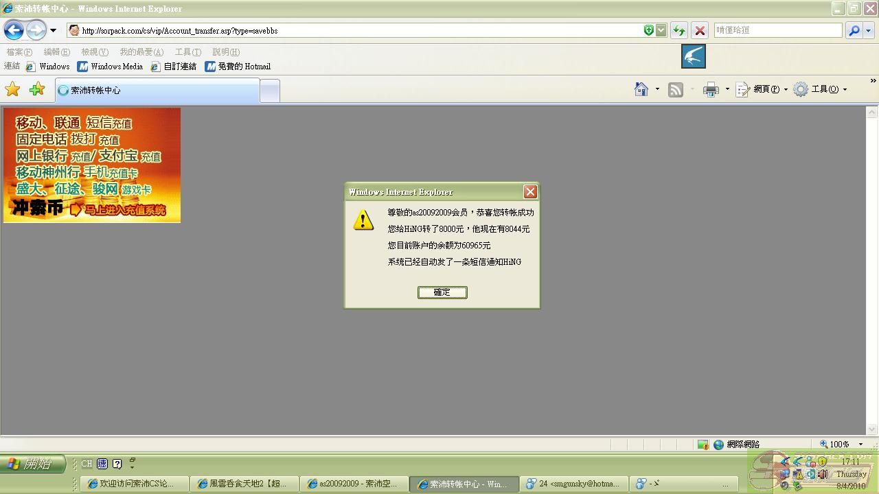 | -- 作者:TIGERLEUNG27 -- 发布时间:2010-04-08 17:23:00 -- as好停手了 贏到就好 不要再賭 我試過輸 知輸很慘