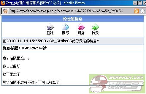 | -- 作者:Zerg_pig -- 发布时间:2010-11-14 17:34:00 -- 這位Sir_StrikeGG人兄素貭。 這位Sir_StrikeGG人兄 他從前是我們SK戰隊的, 不過當我們SK戰隊有危難時,他就拋掉我們離去別族 今天今日我們SK戰隊到50人 強大了。 中午他pm我說想回來SK 威脅說不給他副队他不回來。 我說不可以 他便立刻說我們SK是垃圾戰隊。素貭真TM的好。 大家看看他pm我的內容。 |