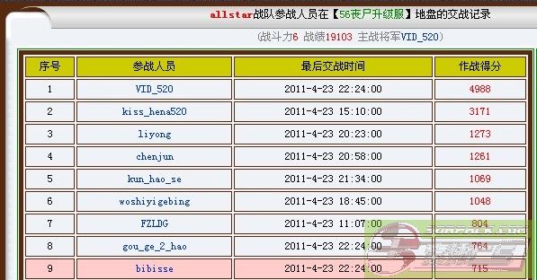| -- 作者:liyong -- 发布时间:2011-04-16 18:27:00 -- [公告]【allstar】战队积分奖励帖 特别提醒: 1 此帖为allstar(全明星)战队积分专用奖励贴,任何队员必须按照格式回复!不是本隊的隊員請不要回帖, 否則當灌水處理!! --50索币 2 积分奖励由战队队长,每次发放需将发放记录以回帖的形式记录 3 任何胆敢擅自修改积分数字的队员,一经发现,永久踢出战队! 希望全体队员明白一点,你们不是为战队守地盘,而是为自己的利益,只有战队强大了,富强了, 队员的福利,待遇才会不断的改善和提高!希望全体队员都自觉自律的守卫自己的家园! 积分奖励制度 1 即使以上地盘一旦失守,当天的积分奖励依然有效!毕竟大家努力了! 2 、清零时,积分奖励依然有效! 3 、积分每天必须由本人将积分复制到指定专用奖励贴,当天有效! 4、攻服时,如果地盘打下,则按积分奖励,否则无奖励! 丧尸升级服,每天积分500以上50SB,1000以上100,2000分以上200. 自己不发积分图奖励会取消的 56IP 117.25.129.90:27056 09IP 123.183.212.98:27018 [此贴子已经被作者于2011-4-20 06:30:40编辑过]