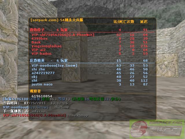 | -- 作者:ooo0ooo -- 发布时间:2011-07-25 13:18:00 -- 刺杀大兵服第一张打满一张图的战绩 对于没有等级没有经验的而言,不算太菜吧哈哈 |