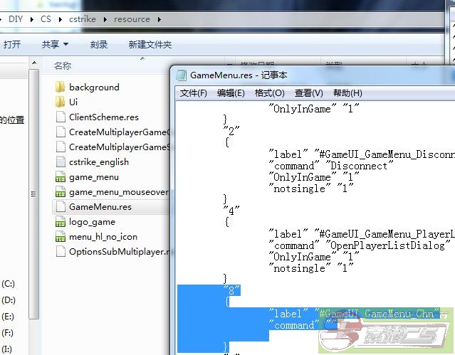 首先是2张txt,gameui_schinese.txt和valve\cstrike_schinese,看英文部分大家也该明白,gameui是什么意思客户端UI的字典,第二张是这个MOD