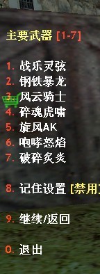 主要武器菜单如下:
