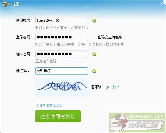 下载之后YY会在你的电脑桌面,双击均可!然后你点下角的注册帐号!