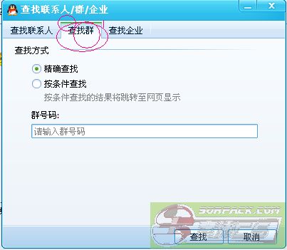 此主题相关图片如下:点上面的红圈里的“查找群”,然后输入群号。再点下面的“查找”。