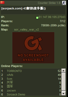 刚刚在43玩,突然来了一大帮人,为首的c/h/b说VIP走吧,结果我没来得急走,被他们用B51一下爆头而是,我看情况不对,赶紧走人,妈呀,自瞄对透视,作弊以暴力加速器,这是属于他们的天下,嘿嘿!他们不会是在PK看谁的作弊器厉害吧