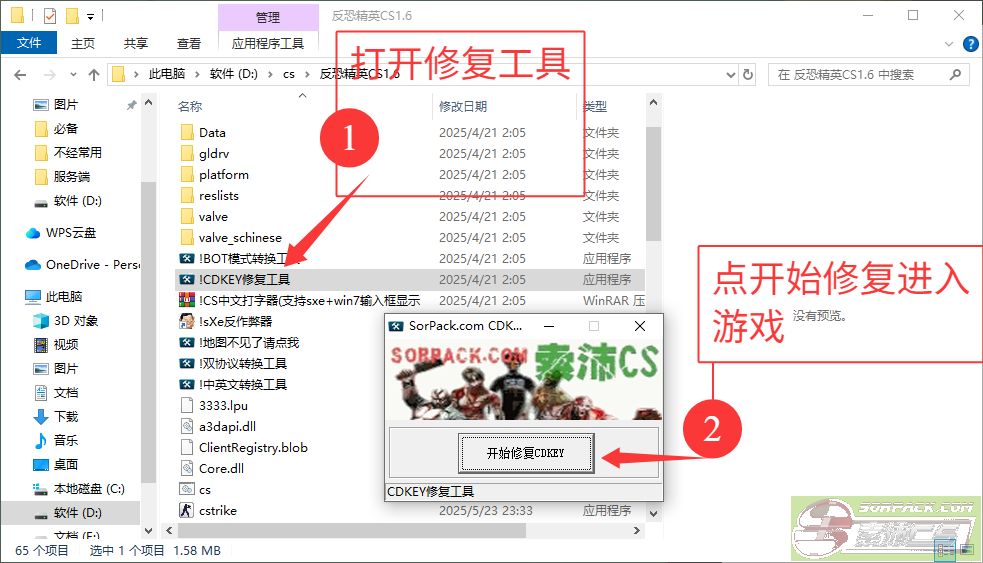 在你安装的CS目录里找到 !CDKEY修复工具 不知道怎么找目录的话直接右键CS文件