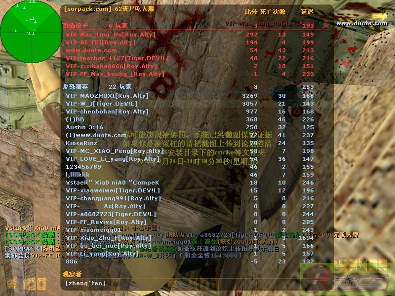 12010-9-24 14:19:00【62丧尸吃人服(Roy.Alty)】会员VIP-FF_Revive购买OP权限把玩家VIP-W_J***了