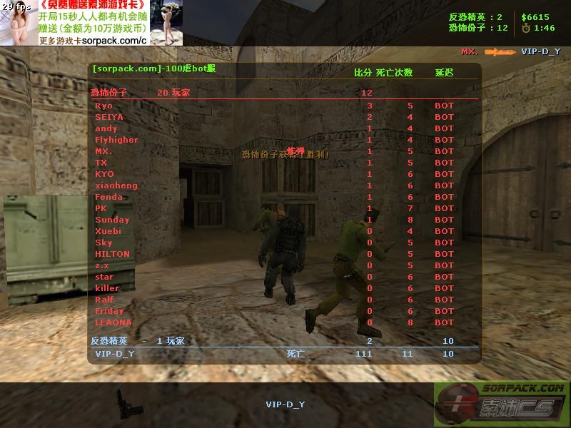玩法:普通混战,下蛋(C4)玩法,这时由于CT人数较少,C4的时间是50秒后才爆,每局时间也是少到了2分钟