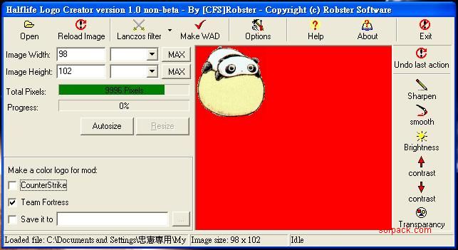 發佈 logo 把左下角的 Save it to打勾,然後選路徑至 .... 中文版CS是 Steam\SteamApps\你的帳號\counter-strike\cstrike_tchinese\ 英文版CS是 Steam\SteamApps\你的帳號\counter-strike\cstrike\ ※注意,然後請把檔名存成 tempdecal.wad (原本是 pldecal.wad ) 再按下 Make WAD