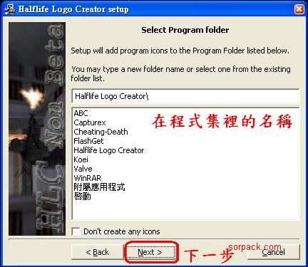 (安裝位置,有可能隨您原先CS安裝的位置不同,總而言之,放到 counter-strike\ 裡面) 開啟 HLC (開始→程式集→Halflife Logo Creator→Halflife Logo Creator