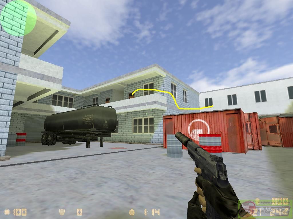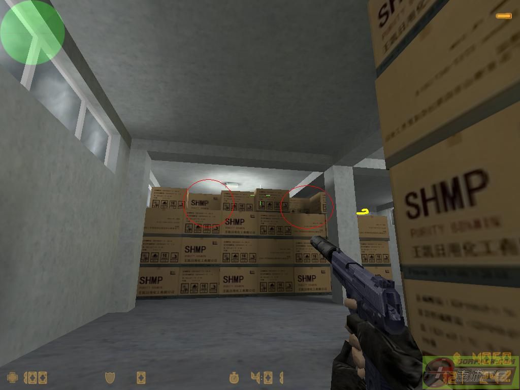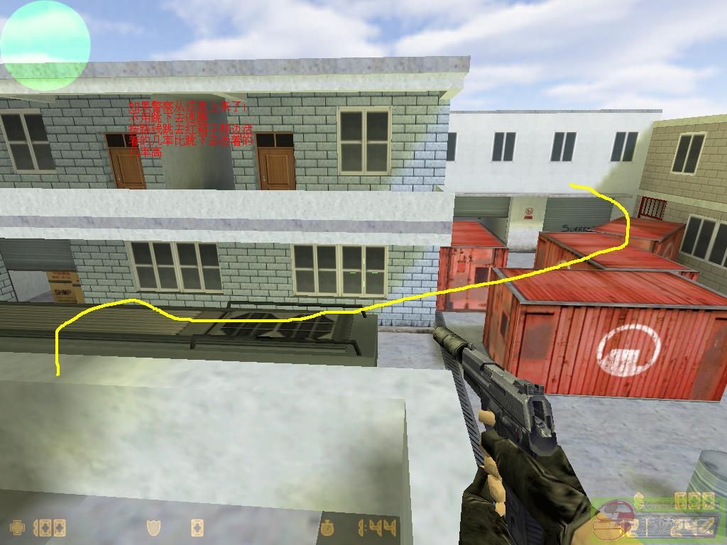 如果在上2楼附近的地方被***追杀,你可以试试跑上2楼,直接跳去红箱子上逃跑