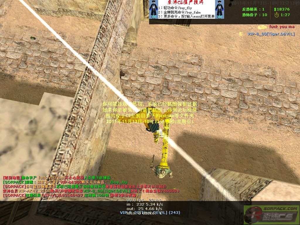 【91丧尸升级服】会员VIP-AK47_2000购买OP权限把玩家VIP-8_00[Tiger.DEV!L]处死了