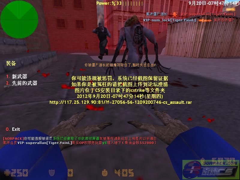1002012-9-20 08:19:00【56丧尸升级服】会员VIP-JJK[Tiger.YxinL]购买OP权限把玩家y1踢出服务器[Demo]
