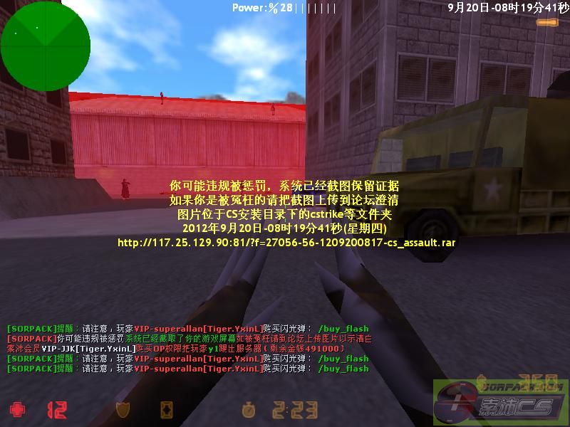 请看DEMO在之前刚开局你就因被OP处死,你还斯行不改7时48分35秒时又进来捣乱。7时50分23秒时你抓人时人家扔的俩闪光对你丝毫没起作用,请问那闪光蛋是买假了还是使用方法不当呢?怎么就没闪到你呢?透视证据不好找我就不计较了,这个开着防闪加恶意投诉就够你喝的了,下次要注册新的小号捣乱,免得丢号心痛