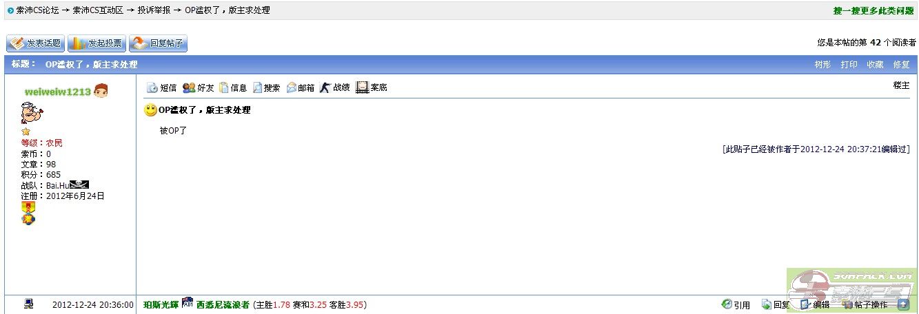 恶意投诉帖子:http://sorpack.com/dispbbs.asp?boardid=39&id=1504540