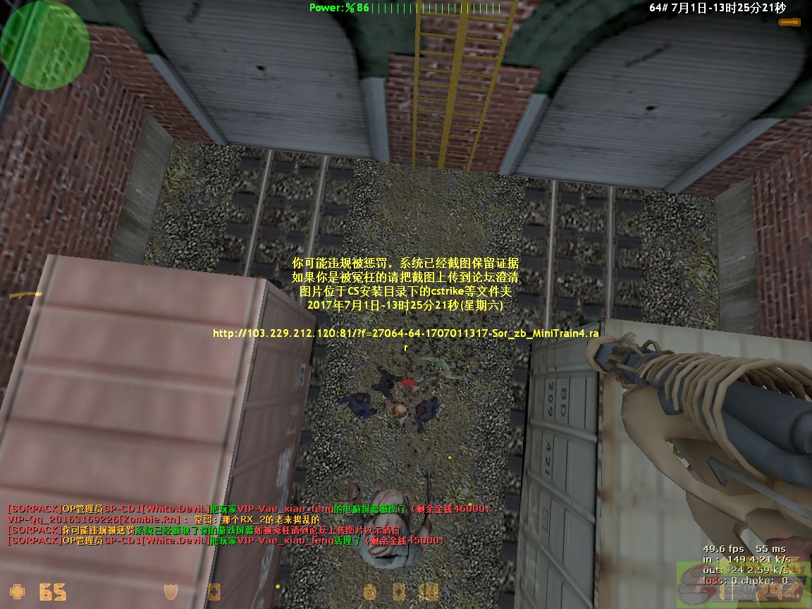 32017-07-01 13:25:00【64丧尸升级服】管理员SP-CD1[White.DeviL]对玩家VIP-Vae_xiao_feng进行双方截图[Demo]