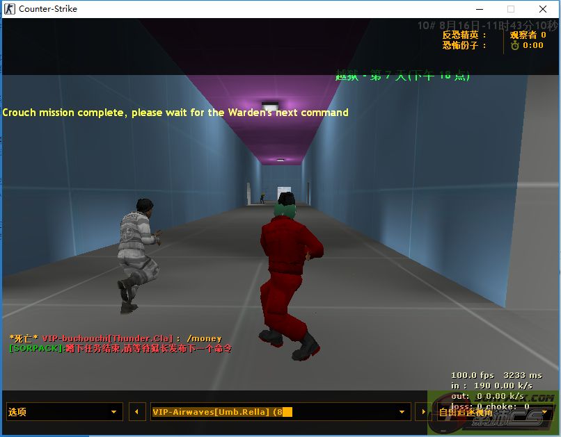狱警 VIP-m_x_r 看到变红的囚犯 Airwaves 时故意假打两枪,然后放水不打死红囚犯