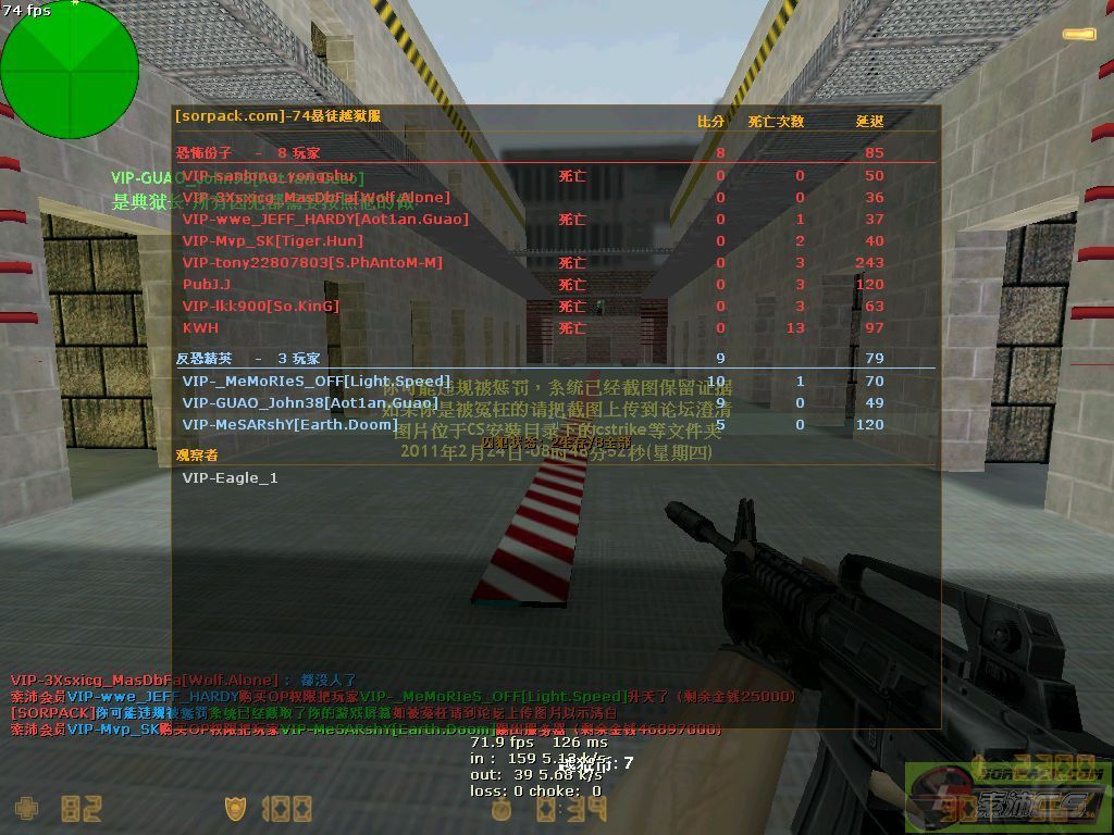 2011-2-24 08:47:00【74暴徒越狱服】会员VIP-Mvp_SK购买OP权限把玩家VIP-MeSARshY[Earth.Doom]踢出服务器