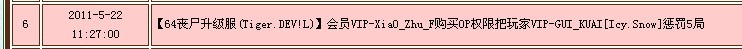 【64丧尸升级服(Tiger.DEV!L)】会员VIP-XiaO_Zhu_F购买OP权限把玩家VIP-GUI_KUAI[Icy.Snow]惩罚5局