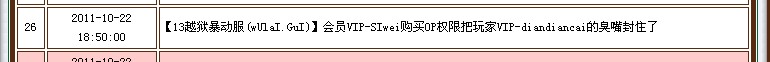 432011-10-22 18:50:00【13越狱***服(wUlaI.GuI)】会员VIP-SIwei购买OP权限把玩家VIP-diandiancai的臭嘴封住了